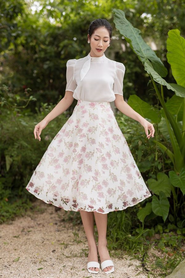 Chân váy xòe hoa hai lớp