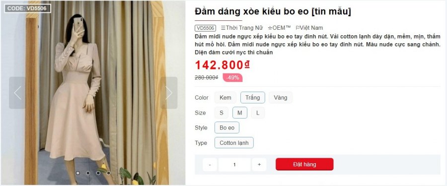 Tại trang chi tiết sản phẩm này, bạn chọn các thông số (Size, Color, Style, Type) phù hợp và số lượng sản phẩm cần mua rồi bấm nút ĐẶT HÀNG.