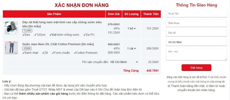 Sau khi bạn kiểm tra đầy đủ danh sách sản phẩm cần mua và nhập đầy đù thông tin như trên thì hãy bấm nút ĐẶT HÀNG để hoàn tất quá trình Đặt hàng trực tuyến.